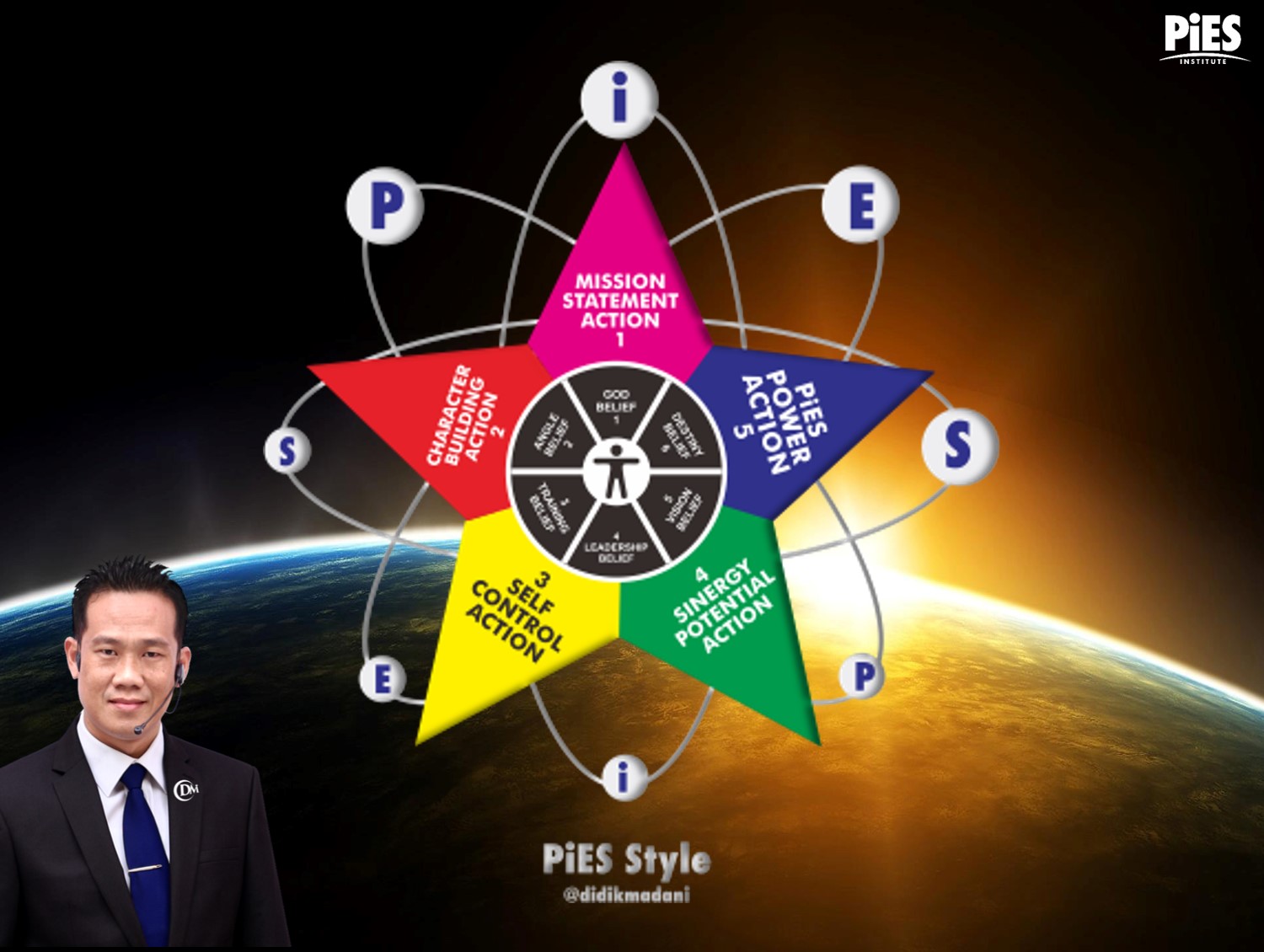 Inilah dasar penyusuanan materi PiES yang diambil dari 5 Rukun Islam, 6 Rukun Iman dan 1 Ihsan. semuanya terangkut dalam PiES Style 561 yang berisi penjelasan tentang bagaimana cara membangun karakter manusia yang mengacu pada 4 sahat nabi (Umar, Abu Bakar, Ustman dan Ali), setiap orang harus mennyadari bahwa dirinya memiliki 1 peran /potensi /jalur kesuksesan sendiri sendiri. Peran itu berdasarkan tipe potensi seperti yang diperankan oleh 4 sahabat nabi diantaranya: